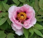 Seedling 99/035. Parentage: Raised from open pollinated mixed Gansu Mudan seeds. First bloomed 1999. First propagated 2014. SEMI-DOUBLE with 3-4 rows of petals. One flower per stem, 16 cm (6¼") in size. Petals pink, darker near the flares, then fading to creamy pink at petal’s edge. Dark red flares extend about a quarter of petal's length, with bleeding edges. Petals cupped. Carpels white, moderately hairy, 5 in number. Stigmas white, normal anatomy. Pollen-bearing stamens, filaments red at base, creamy pink at tip. Sheath white, complete. Fragrance. Blooms early/mid-season. Typical Gansu Mudan foliage. Spreading upright growth to 120 cm (48"). A healthy and vigorous grower. The flower reminds the originator of an early peaceful sunrise and is thus named for composer Ruggero Leoncavallo’s song "Mattinata",which means morning. To be propagated and distributed by W. Giessler, Gross-Rosenburg, Germany.