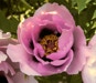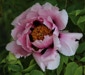 Seedling 1R22. Parentage: P. rockii ssp. linyanshanii open pollinated. First bloomed 2010. First propagated 2014. SINGLE with 2-3 rows of large pink petals. Average width of guard petals 7-8 cm (2¾-3"). One flower per stem, pink, 22 cm (8½") in size. Black flares bleeding to red, extend about 30% of petal's length. Petals cupped. Carpels pale green, moderately hairy, 5 in number. Stigmas faint pink, normal anatomy. Pollen-bearing stamens, filaments pink at base and white at tips. Sheath pink, complete. Fragrance. Blooms early/mid-season. Spreading upright growth to 140 cm (55"). It is an open pollinated F1 seedling of species P. rockii ssp. linyanshanii, and a sister seedling of 'Rhodonit' and 'Flamenco'. The difference betweeen P. rockii and P. rockii ssp. linyanshanii is: the height of the plants up to 250 cm, the tough woody character of stems, the lanceolate leaflets, the flower size of up to 25 cm, the bud size of 5 cm more than double that of P. rockii. Sheath and filaments of the species are always white, while hybridized plants can have colored ones. To be propagated and distributed by W. Giessler, Gross-Rosenburg, Germany.