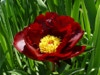 Parentage - unknown lactiflora. First bloomed in 1992. Very dark red, RHS-CC 187A. Stamen, pollen, seeds. Three buds per stem, fragrant, height 1,2m. Increases slowly, shining reddish foliage until bloom time. Obsidian has the darkest red of a lactiflora hybrid we have ever seen. According to the color charts of Royal Horticultural Society, Code NO 187A. Stems and carpels of the same red underline the beauty of the flower. Obsidian name resembles to black volcanic glass.