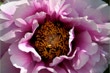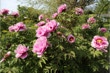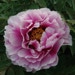 Tree peony. No seedling number.. Pod parent a Rockii hybrid of unknown origin, pollen parent an unknown Japanese tree peony. First bloomed 1999. First propagated 2003. SEMI-DOUBLE flowers, 20 cm (8 inches) in diameter, bluish pink fading to white as flower ages, one (sometimes two) buds per stem. Petals are rounded, with dark, nearly black flares. Fragrance, but not strong. Carpels 5 or more in number, pale green, moderately hairy. Stigmas white, normal. Has stamens and pollen, produces seeds. Sheath white, complete. Foliage green, suffused purple. Upright spreading growth to 2 m (6,5 feet). Named in honor of Johann Sebastian Bach with his Passacaglia in C-Minor in mind. The derivation of passacaglia is from the Spanish „pasar una calla“ (to go along the street), and the peony‘s original planting site was in the garden, along the street.