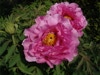 (Suffruticosa Group) Seedling # 99.014, and limited distribution under number. Parentage: open pollinated seedling of Gansu Mudan. First bloomed 1999. First propagated 2003. Early season bloom. SEMI-DOUBLE. Flowers 20 cm (8”) in size, generally 1 per stem. Strong pleasing fragrance. Petals pink (RHS CC 62 A) with red-purple flares (RHS CC 71 A) extending about 20% the length of the petals, with edges bleeding. Carpels on average 5 to 6, hairy, stigmas white. Well developed complete sheath, white. Pollen bearing stamens, filaments red at the base, then white. Produces seeds. Foliage green with reddish overtones. Stems reddish. Upright growth. Named after a musical term which indicates a return to the original theme. The name was suggested by the return of this seedling to the Rieck garden after it had been given to a friend, Hans Esleben, because of space limitations. It now grows in both gardens.
