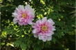 Seedling 01/005. Parentage: open pollinated seedling of P. decomposita ssp. rotundifolia (parent plant sourced from Peace Peony Nursery in Gansu, China). First bloomed 2010. SEMI-DOUBLE. Flowers 20 cm (8”) in size, 1 to 2 per stem. Fragrance. Petals light purple (RHS CC 75 C) with red flares (RHS CC 74 C) extending about 1/3 the length of the petals, and having blurred edges. Carpels on average 5, sparsely hairy, stigmas white. Pollen bearing stamens, filaments white. Produces seeds. Upright growth to 1.5 m (5 feet). Planted in half shade (since the seed parent does not do well in full sun), the plant has proved extremely vigorous.
