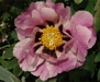 Strauchpfingstrose. Sämling TT5, der aus einer Mischung von Gansu Mudan Samen entstanden ist. Erste Blüte 2012. Vermehrung 2016 von W. Gießler, Groß Rosenburg. Halb gefüllte Blüte, eine Blüte pro Stängel mit einem Durchmesser von 16 cm. Schalenförmige Blüte mit pinkfarbenen Petalen, die an der Basis weiß erscheinen und schwarze Flecken in der Mitte zeigen, die pink auslaufen. Die 5-11 Karpelle sind weiß und mäßig behaart. Weiße normal geformte Narbe. Ebenfalls sind die Staubfäden weiß, die reichlich Pollen tragen. Scheide weiß und ganz umschlossen. Blütezeit frühe bis mittlere Saison. Die Blätter haben gute Substanz und sind typisch Gansu Mudan. Kompakte Wuchshöhe bis 100 cm. Die erste Blüte von Tarantella erinnerte uns an den italienischen Tanz. Die dunklen Flecken, umgeben von den weißen Farben geben der rosa Blüte eine festliches und fröhliches Aussehen. Vermehrt und angeboten von W. Gießler, Groß Rosenburg, Deutschland.,
