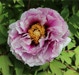 Tree peony. No seedling number.. Pod parent a Rockii hybrid of unknown origin, pollen parent an unknown Japanese tree peony. First bloomed 1999. First propagated 2003. SEMI-DOUBLE flowers, 20 cm (8 inches) in diameter, bluish pink fading to white as flower ages, one (sometimes two) buds per stem. Petals are rounded, with dark, nearly black flares. Fragrance, but not strong. Carpels 5 or more in number, pale green, moderately hairy. Stigmas white, normal. Has stamens and pollen, produces seeds. Sheath white, complete. Foliage green, suffused purple. Upright spreading growth to 2 m (6,5 feet). Named in honor of Johann Sebastian Bach with his Passacaglia in C-Minor in mind. The derivation of passacaglia is from the Spanish „pasar una calla“ (to go along the street), and the peony‘s original planting site was in the garden, along the street.