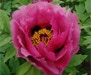 Strauchpfingstrose. Sämling 99/033. Eltern offene Absaat aus einer Mischung von Gansu Mudan. Erste Blüte 1999, Vermehrung 2014. Schalenförmig halbgefüllt mit 3 Reihen von Blütenblättern. Trägt eine Blüte pro Stängel mit einem Durchmesser von ca. 18 cm. Die pinkfarbenen Blütenblätter tragen an ihrer Basis einen schwarzen Basalfleck, der 20 % der Länge beträgt und gezähnt ausläuft. Die 5 Karpelle sind weiß und schwarch behaart. Narben pink und normal. Die reichlich Pollen tragenden Staubfäden verlaufen von der Basis in pink zur Spitze nach weiß. Scheide rötlich-pink und nahezu geschlossen. Duft. Blütezeit früh bis Mitte der Saison. Typische Gansus Mudan Blätter. Aufrechter Wuchs bis 130 m. Wie ihre Schwestern 'Quintett', 'Mattinata' und 'Amabile' eine gesunde und wüchsige Pflanze. Vermehrt und angeboten von W. Gießler, Groß Rosenburg, Deutschland.